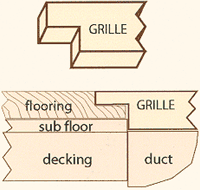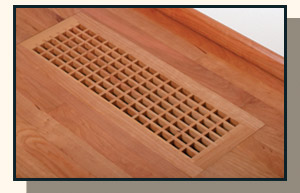 Flush Rim grilles feature a rectangular grid pattern and are the preferred style for prefinished hardwood floors where an architecturally smooth installation is required. These grilles "drop" in to a pocket routed in the finish flooring. Each vent is 3/4" thick with a standard rim that is 1" wide by 5/16" thick. Custom rim thicknesses are available upon request (20% upcharge).